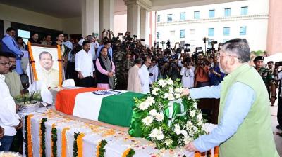 रांची: झारखंड के दिवंगत शिक्षा एवं निबंधन मंत्री रामदास सोरेन को शनिवार सुबह झारखंड विधानसभा में राजकीय सम्मान के साथ विदाई दी गई। राज्यपाल संतोष कुमार गंगवार, विधानसभा अध्यक्ष रवींद्रनाथ...