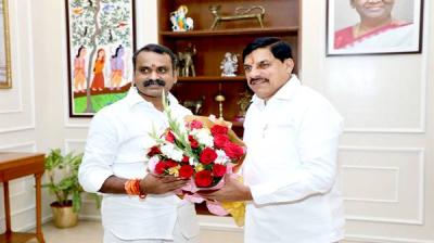 मुख्यमंत्री डॉ. यादव से केंद्रीय सूचना एवं प्रसारण राज्यमंत्री डॉ. मुरुगन ने की सौजन्य भेंट