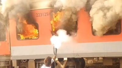 सरहिंद में अमृतसर-सहरसा गरीब रथ में भीषण आग, सभी यात्री सुरक्षित
