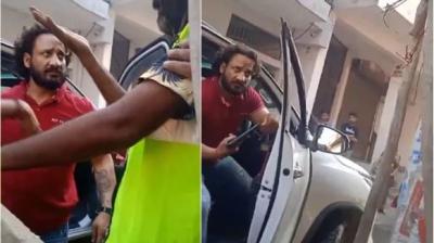 फॉर्च्यूनर सवार की दबंगई! सफाईकर्मी को थप्पड़ जड़ा, गालियां दीं और पिस्तौल दिखाकर धमकाया, देखिए वायरल वीडियो