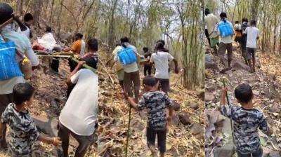 परिजन 17 किमी तक मरीज को खाट पर लादकर ले गए