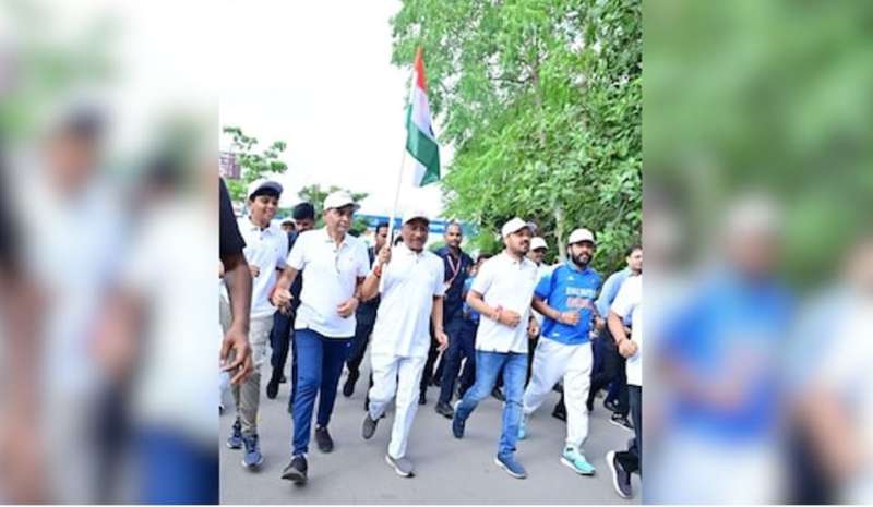 रायपुर : छत्तीसगढ़ के मुख्यमंत्री विष्णुदेव साय आज गुरुवार को राजधानी रायपुर के मरीन ड्राइव में आयोजित स्वतंत्रता दौड़ में शामिल हुए। इस दौरान उन्होंने कार्यक्रम को संबोधित करते हुए कहा कि हमारा तिरंगा पूर्वजों के वर्षों के संघर्षों और बलिदान का जीवंत प्रतीक है। हम सभी तिरंगे की शान को हमेशा बनाए रखेंगे, अपने अमर बलिदानियों को कभी नहीं भूलेंगे और सभी मिलकर विकसित, समृद्ध और सशक्त छत्तीसगढ़ का निर्माण करेंगे। इस दौरान उन्होंने हजारों युवाओं के साथ स्वतंत्रता दौड़ लगाई और भारत माता और अमर बलिदानी रानी दुर्गावती की प्रतिमा पर माल्यार्पण कर उन्हें नमन किया।