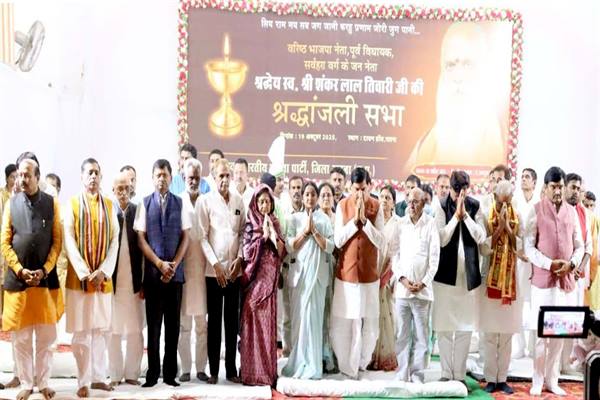 भोपाल : मुख्यमंत्री डॉ. मोहन यादव ने रविवार को सतना पहुंचकर पूर्व विधायक स्व शंकरलाल तिवारी के निधन पर शोक श्रद्धांजलि अर्पित की। मुख्यमंत्री ने टाउन हाल सतना में श्रद्धांजलि सभा में स्व. तिवारी के चित्र पर श्रद्धासुमन अर्पित करते हुए दिवगंत आत्मा की शांति के लिये प्रार्थना की। मुख्यमंत्री डॉ. यादव ने कहा कि स्व. तिवारी बहुत ही कर्मठ और जनता के कल्याण के लिए सदैव संघर्ष करने वाले जनप्रतिनिधि थे। तिवारी ने सदैव गरीबों की आवाज बुलंद की। उनके देहावसान से अपूरणीय क्षति हुई है। मुख्यमंत्री ने ईश्वर से उनकी पवित्र आत्मा की शांति के लिए कामना की।
