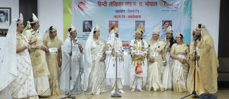 भोपाल। हिन्दी लेखिका संघ, मध्यप्रदेश द्वारा आयोजित नाट्य कार्यशाला एवं नाट्य मंचन कार्यक्रम दुष्यंत संग्रहालय सभागार में अत्यंत सफल और प्रभावशाली रहा। कार्यक्रम की अध्यक्षता सुश्री सरोज शर्मा (प्रोफेशनल कलाकार एवं कस्ट्यूम डिजाइनर, रंगमंडल भारत भवन, भोपाल) ने की। मुख्य अतिथि के रूप में नाट्य निर्देशक श्री अशोक बुलानी और विशिष्ट अतिथि नाट्य लेखिका एवं निर्देशक श्रीमती नीति श्रीवास्तव उपस्थित रहीं। संस्था की अध्यक्ष डॉ. साधना गंगराड़े ने स्वागत उद्बोधन में कहा कि – “हर व्यक्ति के भीतर एक कलाकार छिपा होता है, जिसे पहचानना, प्रोत्साहित करना और निखारना हमारा उद्देश्य है। हिन्दी लेखिका संघ की महिलाओं ने इस दिशा में सार्थक पहल की है।” बाल दिवस के उपलक्ष्य में आयोजित इस अवसर पर पर्यावरण संरक्षण और स्वच्छता के संदेश पर आधारित दो प्रभावशाली नाटकों का मंचन किया गया।•