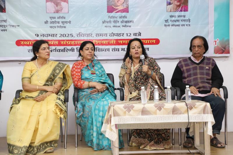 “सेवा का आदर्श” – लेखन एवं निर्देशन डॉ. रंजना शर्मा •“जीवनधारा” – लेखन एवं निर्देशन डॉ. साधना शुक्ला दोनों नाटकों में हिन्दी लेखिका संघ की सदस्य महिलाओं ने उत्साहपूर्वक अभिनय कर दर्शकों की सराहना अर्जित की। वरिष्ठ रंगकर्मी सुश्री सरोज शर्मा ने कहा कि “दोनों नाटक प्रभावशाली और संदेशात्मक थे, इनमें कविताओं का समावेश कर इन्हें और भी रोचक बनाया जा सकता है।” मुख्य अतिथि श्री अशोक बुलानी ने सुझाव दिया कि “संघ के प्रतिभाशाली सदस्य वर्तमान सामाजिक परिस्थितियों, परिवार में उत्पन्न हो रही समस्याओं और समाज में फैल रही विषमताओं को नाटकों के माध्यम से प्रस्तुत करें, ताकि दर्शकों तक गहरा संदेश पहुँचे। ”विशिष्ट अतिथि श्रीमती नीति श्रीवास्तव ने कहा कि “मंच और दर्शकों के बीच संवाद ही नाटक की आत्मा है, और यह प्रयास उसी दिशा में सराहनीय कदम है।” कार्यक्रम का शुभारंभ सरस्वती वंदना से हुआ, जिसका भावपूर्ण प्रस्तुतीकरण नविता जौहरी ने किया। तत्पश्चात कार्यक्रम का संचालन डॉ. रेणु श्रीवास्तव ने प्रभावपूर्ण ढंग से किया, जबकि महिमा वर्मा ने आभार व्यक्त किया।