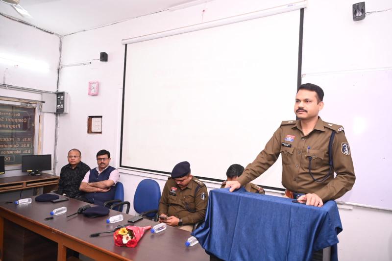रायपुर- महंत लक्ष्मी नारायण दास महाविद्यालय रायपुर में कमिश्नरेट प्रभावशील होने के बाद पहला महत्वपूर्ण व्याख्यान सम्वाद से समाधान कार्यक्रम पुलिस अधिकारियों की उपस्थिति में आयोजित हुआ इस कार्यक्रम में प्रमुख रूप से एसीपी तारकेश्वर पटेल , डीएसीपी दीपक मिश्रा थाना प्रभारी कोतवाली सतीश सिंह एवं यातायात निरीक्षक भोई आदि की विशेष उपस्थिति रही वहीं आयोजन में महाविद्यालय के प्राचार्य डॉक्टर देवाशीष मुखर्जी एवं शिक्षक शिक्षिकाएं के साथ विद्यार्थियों की उपस्थिति रही आयोजन में पुलिस अधिकारियों ने ने संवाद से समाधान में साइबर अपराध पुलिस हेल्पलाइन नंबर सहित नशाखोरी को रोकने के लिए होने वाले प्रयासों को लेकर विस्तार से जानकारी रखी अधिकारियों ने बताया कि किस तरह के साइबर अपराध निरंतर सामने आ रहे हैं उन अपराधों से पुलिस किस तरह निराकरण कर रही है अधिकारियों ने विद्यार्थियों को जागरूक करने की कोशिश और पुलिस के महत्वपूर्ण नंबर बताएं ताकि आवश्यकता पड़ने पर उन नंबरों का उपयोग कर विद्यार्थी अपने को अच्छी तरह सकें और आने वाले खतरे से बच सकें महाविद्यालय के प्राचार्य डॉक्टर देवाशीष मुखर्जी ने भी संवाद से समाधान कार्यक्रम को पुलिस का एक महत्वपूर्ण अभियान बताया और कहा कि इस तरह के अभियान से जागरूकता बढ़ेगी और कॉलेज स्कूल में पढ़ने वाले बच्चे बच्चियों को सुरक्षित रखने में मदद हो सकेगी उन्होंने बोला कि विद्यार्थियों को पुलिस से संवाद कर डर दूर करना चाहिए और अपराध दूर करने में भी मदद करनी चाहिए यातायात निरीक्षक भोई यातायात के नियमों की जानकारी दी और हेलमेट की अनिवार्यता को समझाया ताकि एक सुरक्षित वाहन चलाने में विद्यार्थी सजग और सुरक्षित रहें उनके द्वारा सड़क दुर्घटनाओं को रोकने के लिए तमाम प्रयासों की भी जानकारी दी गई जो बेहद सार्थक रही एडीसीपी दिनेश मिश्रा ने पुलिस हेल्पलाइन नंबर के जरिए विद्यार्थी में जागरूकता बढ़ाने का प्रयास किया इस दौरान विद्यार्थियों ने उनसे सवाल जवाब किया और अपने को संतुष्ट किया उन्होंने बताया कि पुलिस निरंतर अपराध को रोकने की दिशा में कदम बढ़ा रही है और आने वाले दिनों में इसकी बेहतर परिणाम सामने आएंगे कार्यक्रम में प्राध्यापक ललित वर्मा, डॉ प्रेम,अनुपमा जैन, अपूर्व शर्मा, रामप्रसाद दुबे,सिमरन चंद्राकर सहित बड़ी संख्या में छात्र छात्रओं उपस्थित हुए कार्यक्रम का संचालन प्रीतम दास ने की ।