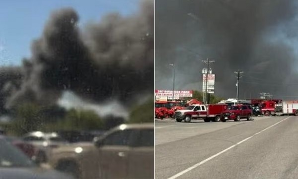 टेक्सास में क्रैश होने के बाद ट्रकों पर गिरा प्लेन, लगी भीषण आग