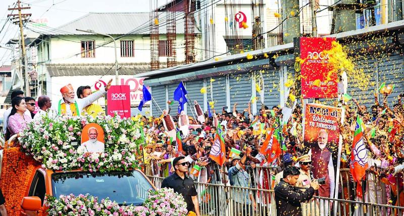तिरुवनंतपुरम: प्रधानमंत्री नरेंद्र मोदी ने रविवार से केरल में भाजपा के चुनाव प्रचार की शुरुआत की। पलक्कड़ में रैली के बाद पीएम त्रिशूर पहुंचे हैं। यहां उनका रोड शो 34 मिनट तक चला। सडक़ के दोनों ओर लोगों की भीड़ मौजूद रही। इससे पहले पलक्कड़ में रैली को संबोधित करते हुए पीएम ने कहा था कि दशकों से केरल मतलबी पॉलिटिक्स के दो मुखौटों के बीच फंसा हुआ है। एक तरफ एलडीएफ, दूसरी तरफ यूडीएफ, एक तरफ कम्युनिस्ट, दूसरी कांग्रेस। एक क्रप्ट, दूसरा महा-क्रप्ट। एक कम्युनल, दूसरा महा-कम्युनल।