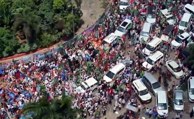 खुली जीप में सवार हो गांधी मैदान की तरफ बढ़े राहुल गांधी को देखने बड़ी संख्या में लोग पहुंचे हैं, इसके साथ ही कार्यकर्ताओं का हूजूम उमड़ा है। यह रोड शो कर कांग्रेस समेत इंडिया गठबंधन के दलों ने एक तरह से शक्ति प्रदर्शन कर दिया है। सभी नेता और कार्यकर्ता रोड शो के साथ ही गांधी मैदान में सभा स्थल की ओर बढ़े हैं। इस दौरान सभी बड़े नेता खुली वैन में सवार नजर आए हैं। रोड शो के साथ ही गांधी मैदान स्थित गांधी प्रतिमा से लेकर हाईकोर्ट स्थित अंबेडकर प्रतिमा तक सभी पहुंचे हैं। इस दौरान जोश से भेर कार्यकर्ता अपने हाथों में झंडा लेकर लहराते और नारे लगाते नजर आए हैं। इसे देखते हुए सियासी जानकारी कह रहे हैं, कि यह यात्रा सिर्फ एक अभियान नहीं, बल्कि चुनावी बिगुल है। ‘गांधी से आंबेडकर पदयात्रा’ के जरिए विपक्ष जनता को यह संदेश देना चाहता है कि वह लोकतंत्र, मताधिकार और सामाजिक न्याय की रक्षा के लिए एकजुट है।