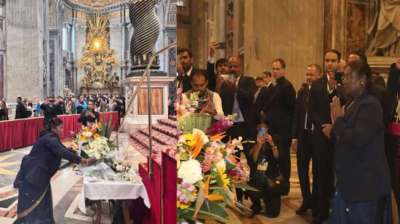 राष्ट्रपति द्रौपदी मुर्मू कैथोलिक ईसाई धर्मगुरु पोप फ्रांसिस के फ्यूनरल में शामिल होने के लिए वेटिकन पहुंच चुकी हैं. वहां पहुंचकर उन्होंने सेंट पीटर्स बेसिलिका में पोप को श्रद्धांजलि दी....