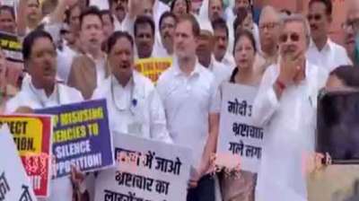 संसद के बाहर विपक्ष नीट और एजेंसियों के दुरुपयोग मामले में कर रहा प्रदर्शन
