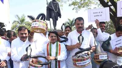 कांग्रेस का अनोखा विरोध प्रदर्शन: सांप की टोकरी संग पहुंचे विधानसभा, बताया- ये है कारण...
