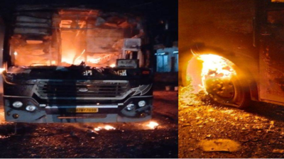 चलती बस में लगी भीषण आग